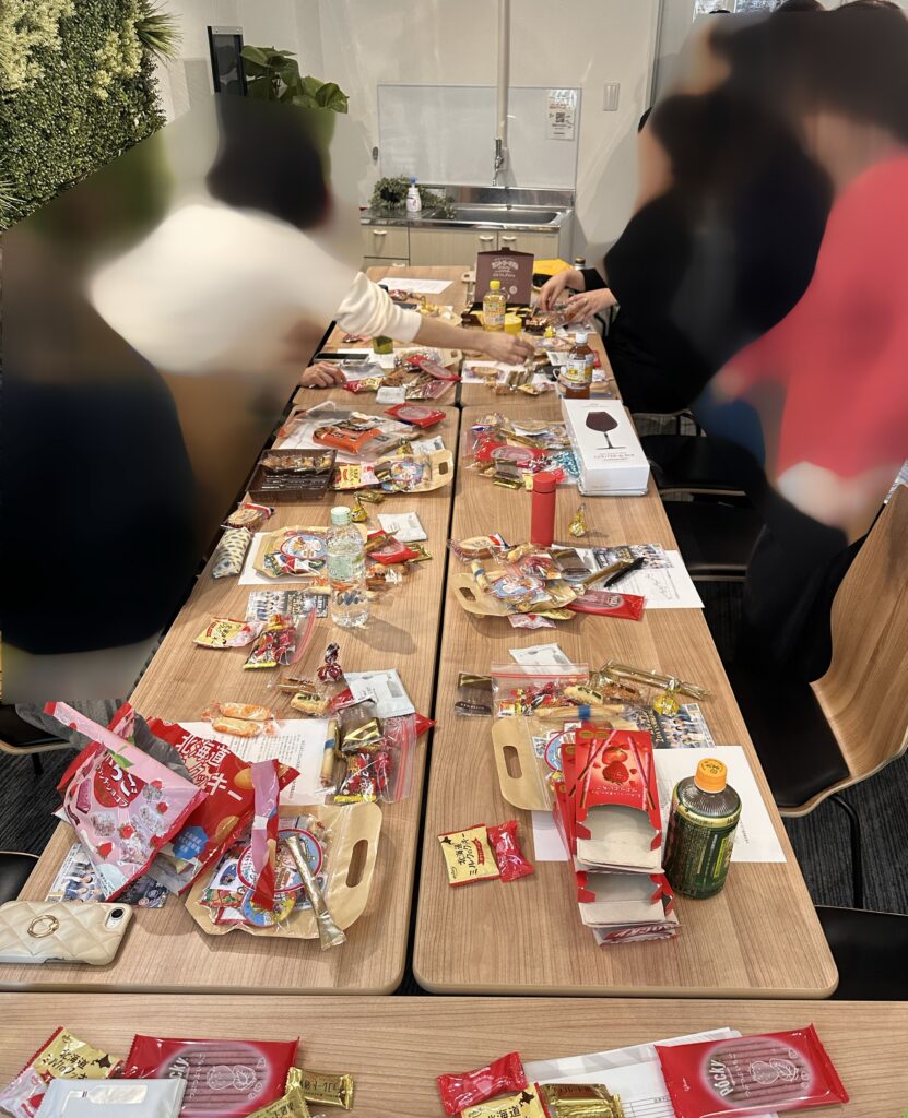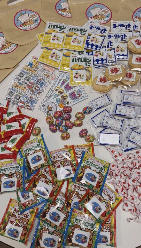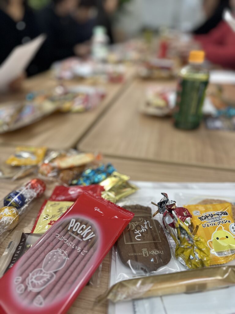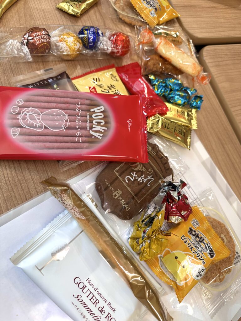 みんないろんなお菓子を持ってきてくれとる〜((( (/* ^^)/