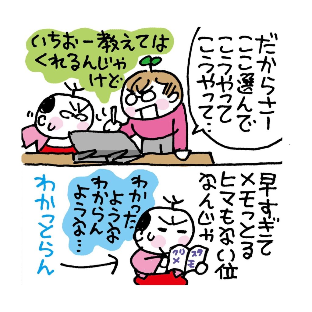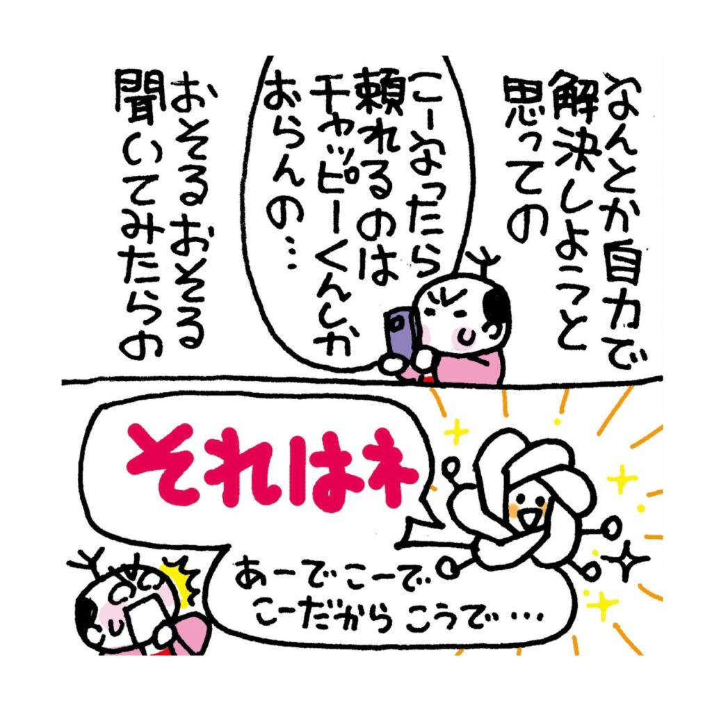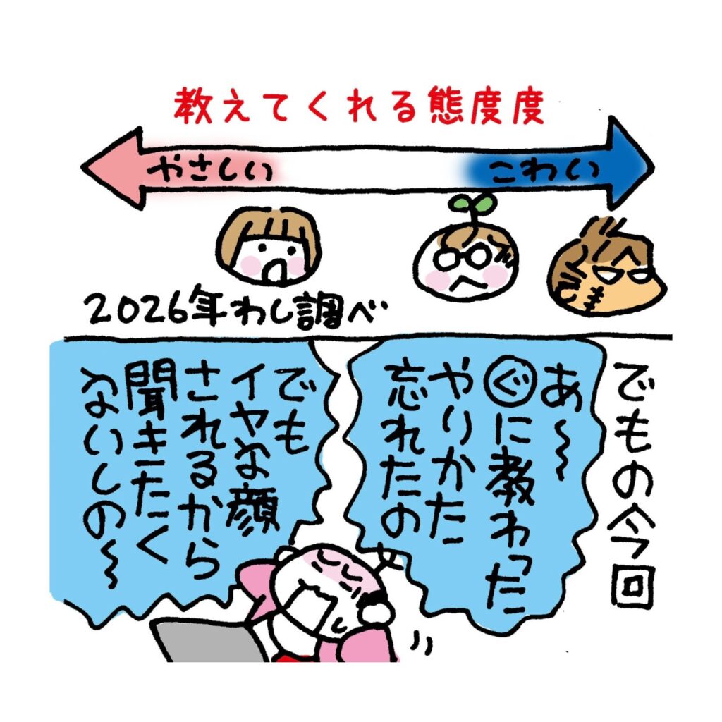 聞くと迷惑がられるわし 2026.04.11 4コマ インターネット 広告 ぐっちゃんはの クリスタについてチョー詳しいんじゃけど 分からん人にイラッときちゃうから 教える人にはなれんて言っておったぞよ やっぱ教える人は チャッピーくんみたいに 仏のような忍耐力と寛容さがないとの! これからはチャッピーくんに頼りつつ クリスタ技術磨いていくぞよ〜 がんばるの((( (/* ^^)/ 3 コメントはこちら 同じカテゴリの記事 聞くと迷惑がられるわし 残りものが待てんラーメン! アナログ時代もヤバかったわし お風呂に入ってビックリした件 無意識レベルで うしろ向きなわし ようやく辿りついた曲名 毛玉取り 百均のが良かった ピンキーリングすぐなくなる件 経路案内わからんわし よーく見たら汚れとる! 現金を使わなすぎての なぜトイレにおしっこせん? おすしの出前 大満足じゃよ!! Amazonさん ちゃんと届けて 御朱印のつかいみち ピュレグミの超!激レア!? ゆで卵の殻むきチャレンジ しつこいけど仙骨リセット ニコのおすすめラーメン屋さん 歯の型取り なぜ押さえる? 節分当日におどろいたこと MRIの準備しくったの!! 穴の位置がちがった件 投資女子会やるから来ての! 仙骨ダイエットその後じゃ! わし作のGIF使ってのー 4代めピヤホン仁義なき戦い 仙骨ダイエットしてたらの! 配達員さんみんないい人 猫初心者がギモンなこと 投資が楽しくなるワケ 落とすものが分かるわし 大晦日にwebで診察してもらった 缶切りがなかったんじゃ なんでも電気なんじゃよ!! GIFづくり修行中じゃよ 年末年始におすすめコレ!! AIに気を使ってしまうわし みな北海道を知らんのじゃの! ボールペン直す裏ワザ! 100万円修行その後どうなった クマの怖さ 今頃わかる 師走じゃの! 安いコーヒー美味しく淹れる ペンの値段にビビったわし リアル肉食系女子のニコ 医療の支払い 革命起きとる 100万円修行 怠っとったニコ 来年の今頃 手術かもじゃ ストーリー編集 修行中のわし HUION NOTE使ってみたレポ 渋谷にわしのお仲間いた あの体幹わしもほしい のこりの2ヶ月占ってもらった! 蛇口のレバー水溜まる問題 ズバリな名前にしてほしいの おフロ場で転んだわし 参拝あとにカンドーした件 詐欺?本物?どっちじゃろう ③ 詐欺?本物?どっちじゃろう② 詐欺?本物?どっちじゃろう 長年の角質なぜ消えた コンタクトどこにあった? ツボ押しに動じんニコが ゴミ袋から解放される! サプリの飲み方まちがっとった アスリートのためのネイル ネコちゃん対策じゃけど キラキラのバッグじゃよ! 裾上げに最強じゃった 久しぶりのスパムすび 乾燥機のしわ具合 どこにカビが生えるのか じゃがいも大好きニコ 生活を激変させたもの 洗剤がややこしい件 本日新刊の発売日なんじゃ 娘たちのクチコミコスメ わしのPCではSOLD OUTじゃのに 実はめちゃ便利じゃった 偽アカウント注意してのー‼️ 記念硬貨 手数料じゃ? 冷凍しめじ長期保存? 洗面台ホース替えてもらった ドンキの神様ほほえんどる? 方向オンチ重症すぎじゃ 見積もりちがいすぎるんじゃけど 窓用エアコンご助言感謝! 8月7日に新刊出るんじゃ ③ 8月7日に新刊出るんじゃ ② 8月7日に新刊出るんじゃ① お勤めを始めたニコ 停電する日どう過ごす!? エアコン問題どうなったか ③ エアコン問題どうなったか ② エアコン問題どうなったか ① Amazonのお茶その後 エアコンにふるえる夏。。。 定期便 使っとるけどの 鍵のジョーシキ知らんかった 家の中で見わけるコツ 退去費用!差がありすぎじゃ 夏の◯は これで一撃‼︎ IKEAさんのショッティス 投資女子会のお誘いじゃ いつものバッグにキラキラついた! 猫ちゃんのキョーミ読めんの! 韓国のホテルで起こったこと ニコのまつ毛 超あがった! 漢方カフェで脈診の結果 神リフォームする韓国のお店 ソウル旅じゃよ!③ 猫ちゃん初心者のわし スタバのギフトLINEよりも。。。 冷蔵庫やっと買った ミッションを完璧にする おたく姉 いま家のなか ととのえ中 ③ いま家のなか ととのえ中 ② いま家のなか ととのえ中 ① 遺伝子検査ぐも受けたぞよ ぐの姿見で絶望したニコ やっと行けた おすしやさん! 引越ししたんじゃけど ② 引越ししたんじゃけど ① 拾ったペックルその後じゃよ ペックル預かっとるぞよ ニコが寝られなかったホテル 見ため<価格じゃろうか! ライブチケットどう取る? 美味しいいただきもの 角質化した原因わかった ぐっちゃんからSOSきた 引っ越し前が暮らしやすい!? 投資の神様の金言が響かん? 指が勝手に腫れたからの モフらし!サイコーじゃった まるでガチャまわすように 1週間もガマンしとった! マイちゃんの時代キタの! 地獄から生還したニコ ダイエット前 必見なんじゃ! 落とし物 拾って拾われた 繁忙期を甘くみとったぞよ 写真の整理でびっくりしたこと 吉方位がどこか聞いたらの ② 吉方位がどこか聞いたらの ① 更新サボってすまんの! 夜間頻尿なくなったワケ 知らんかった落書きテク とある試みカンドーしたぞよ いつの間に?頭に入り込んだ LINE Pay 移行したかの? 